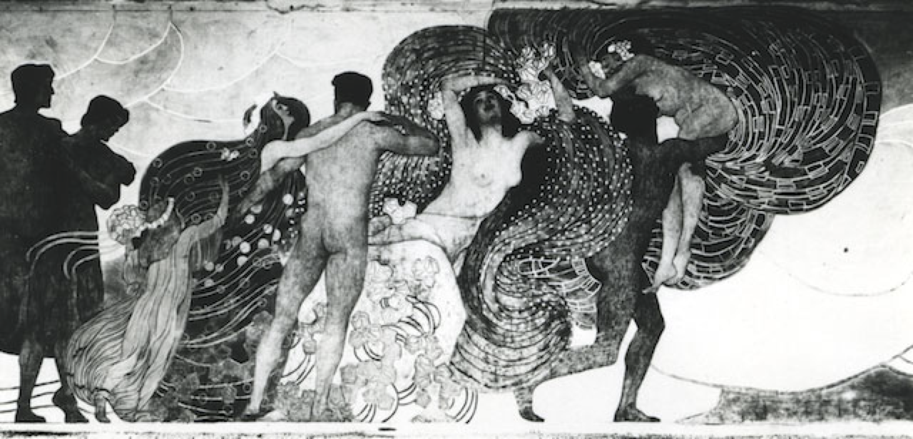 Die Mitgestaltung der großen Beethoven-Ausstellung in der Secession von 1902 ließ den rührigen Künstler aber fast mittellos zurück. Mitglieder der Secession mussten ihre Werke immer aus der eigenen Tasche finanzieren. Der Beitrag Auchentallers war sein Wandfries «Freude, schöner Götterfunken», im rechten Seitenflügel der Secession. Im linken befand sich Gustav Klimts heute berühmtes Beethoven Fries.